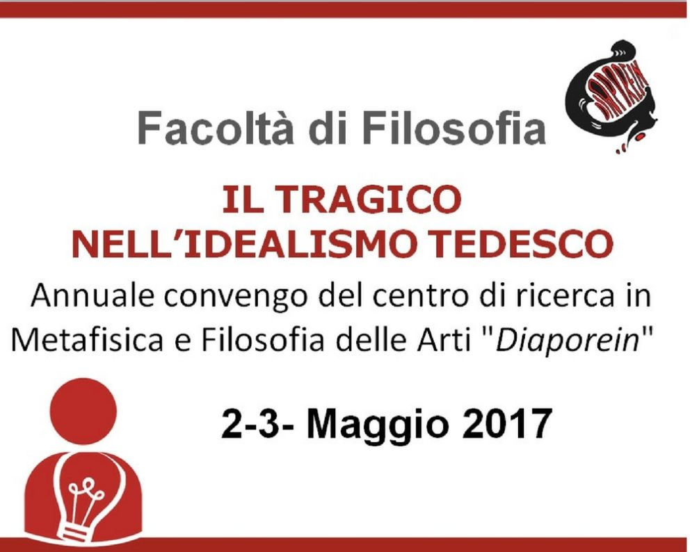 L’annuale convengo del centro di ricerca in Metafisica e Filosofia delle Arti “Diaporein“ sarà dedicato al problema del tragico a partire dal pensiero di Hegel e degli altri pensatori dell’idealismo tedesco. Le due giornate di studi vedranno la partecipazione di importanti studiosi italiani della filosofia classica tedesca e delle sue implicazioni con il pensiero novecentesco e contemporaneo.