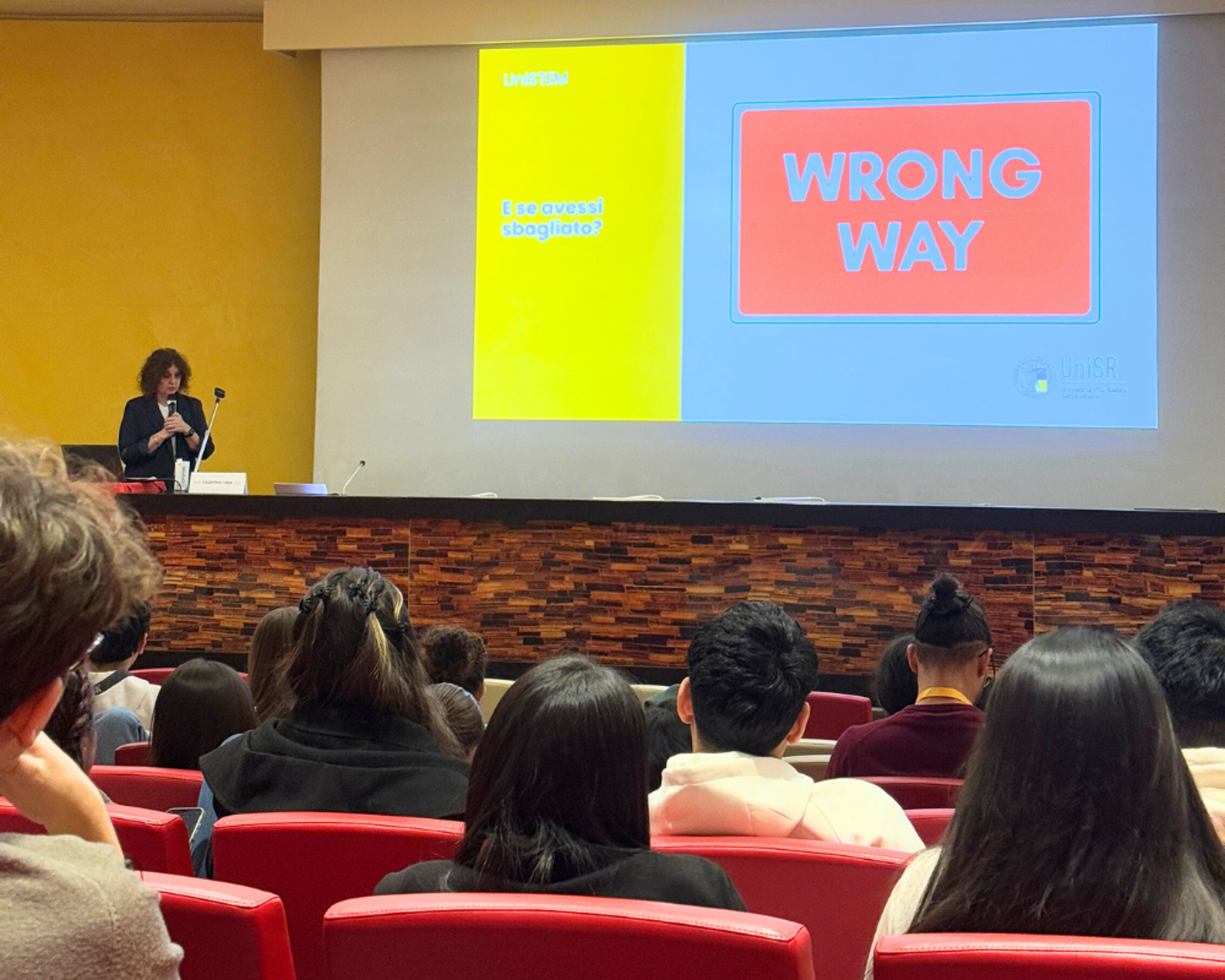 A inaugurare gli interventi di UniStem è stata la lecture “La libertà di sbagliare, la libertà di scoprire”, tenuta da Anna Ogliari, Associata di Psicologia Clinica UniSR, Direttrice della Scuola di Specializzazione in Psicologia Clinica e Delegata del Rettore per le Disabilità, le Pari Opportunità, il Counseling Psicologico e lo Sport. Attraverso un racconto personale e ispirazionale, l’intervento ha messo in luce come la libertà di scegliere – e anche di sbagliare – rappresenti una componente fondamentale non solo del percorso scientifico, ma anche della crescita individuale, offrendo agli studenti spunti di riflessione sul valore dell’incertezza e della scoperta.